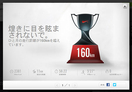 どうせならいままでの Garmin Connect のログもすべて Nike+ にアップロードしてしまおうかとも思いましたが、Nike+ にアップロードするたびにアレコレほめてもらいたい ::-D: と思ったのでここ最近のログのみアップロードして地道に展開していくことに、、、いつやめちゃうかわからないし(^^;)