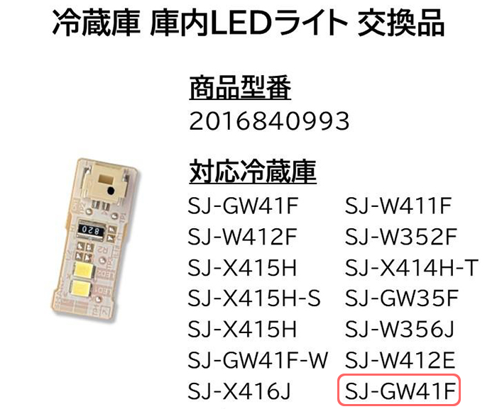 シャープ製プラズマクラスター冷蔵庫 SJ-GW41F 庫内灯 LED基板 201684A063 は正直なところ欠陥品じゃない?
