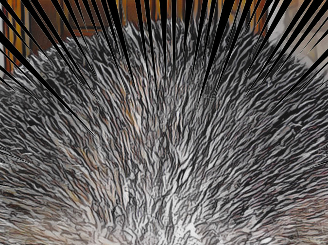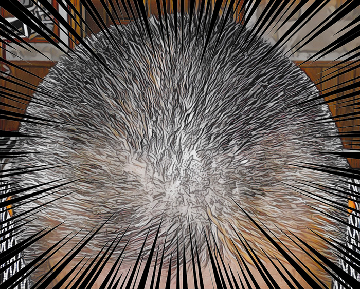 全体的に長さが整ったところで頭頂部の毛量を減らそうと思ってカッターを手に取り前頭部から後頭部へバスッと行ったら