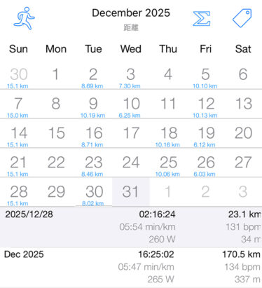 モートン病があまりよくないですが11月9日から始めた毎週日曜の15km走、今月分コンプリート。なんかわからんですが、雨が降らんのですよ、日曜日に。降ったら「走らなくていいのに」と毎回思っているのですが(苦笑)さすがに8回続けると距離に関しは...