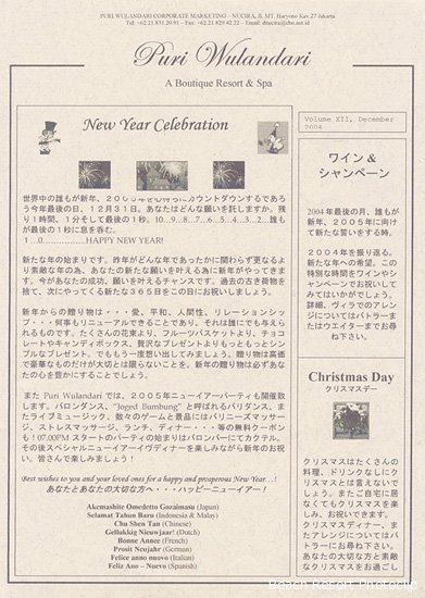 通貨はルピア。手元にあるガイドには100ルピア=約1.5円(2004/7)、雑誌には約1.31円(2004/8)と記載されていますが、いま現在(2005/1)は約1.12円です。やはりスマトラ沖地震・津波の影響でしょうか(Yahoo!の外国為替情報)